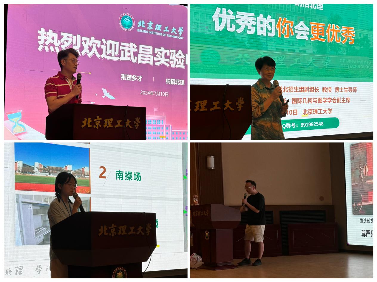 2024年7月10日下午,北京理工大学计算机学院湖北招生组迎来了湖北省武昌实验中学研学团队,本次研学团队由省实验高一年级党支部书记吕定盛带队,近200位高一年级师生走进北理工,开展了一场深度研学活动。计算机学院党委副书记、副院长奚英伦,湖北招生组副组长韩宝玲,湖北籍校友、化学与化工学院教授吴磊,武汉招生组组长罗霄、杨旭,领航人柳文艳,思源学子徐则晨等参加了本次研学活动。