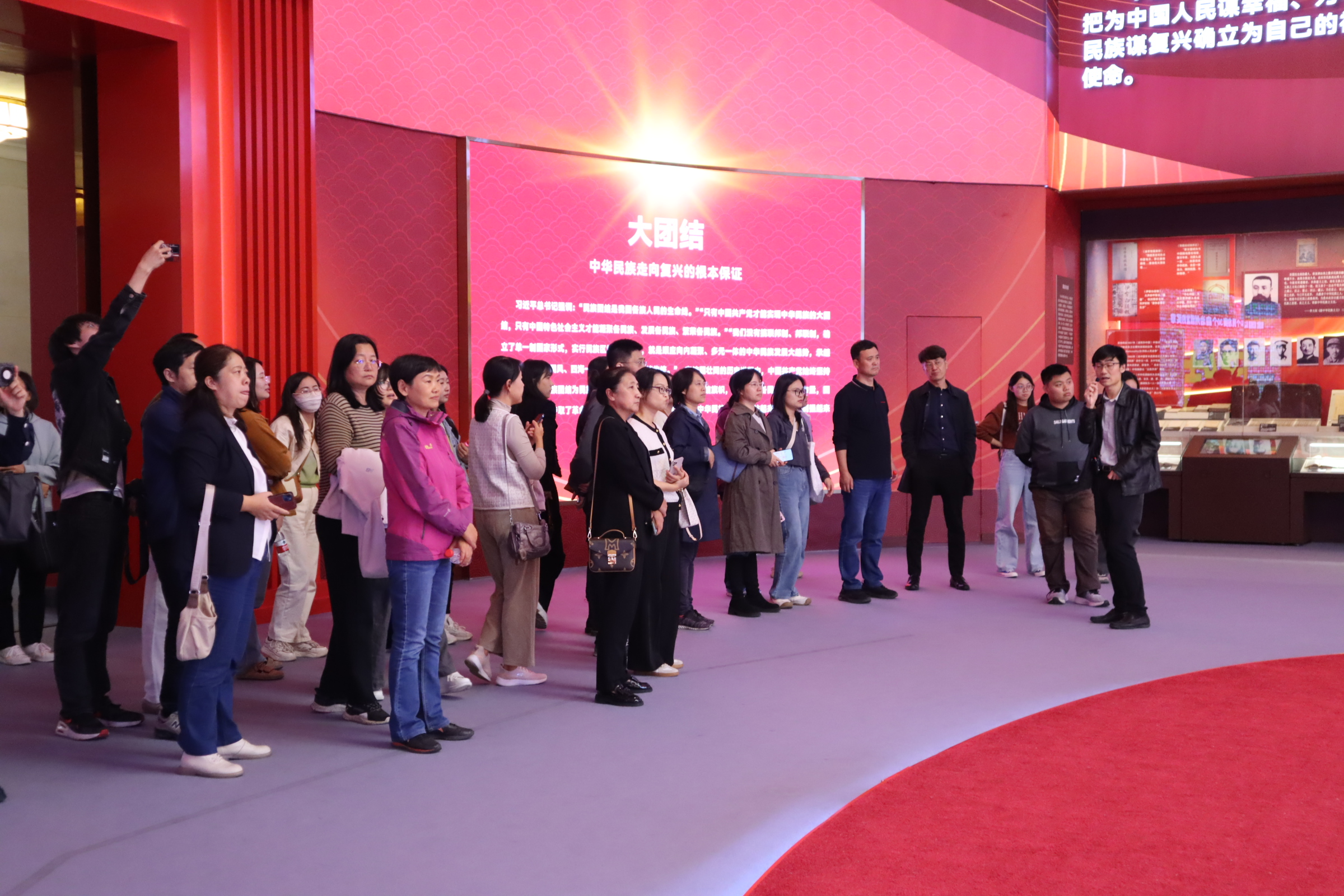 为深入学习贯彻党的二十届三中全会精神,深入贯彻落实习近平总书记关于加强和改进民族工作的重要思想和在文化传承发展座谈会上的重要讲话精神,2024年10月15日下午,北京理工大学计算机学院由党委书记周连景带队,师生四十余名集体参观了北京民族文化宫“铸牢中华民族共同体意识文物古籍展”,近距离探访中华民族共同体形成发展的历史文脉赓续。