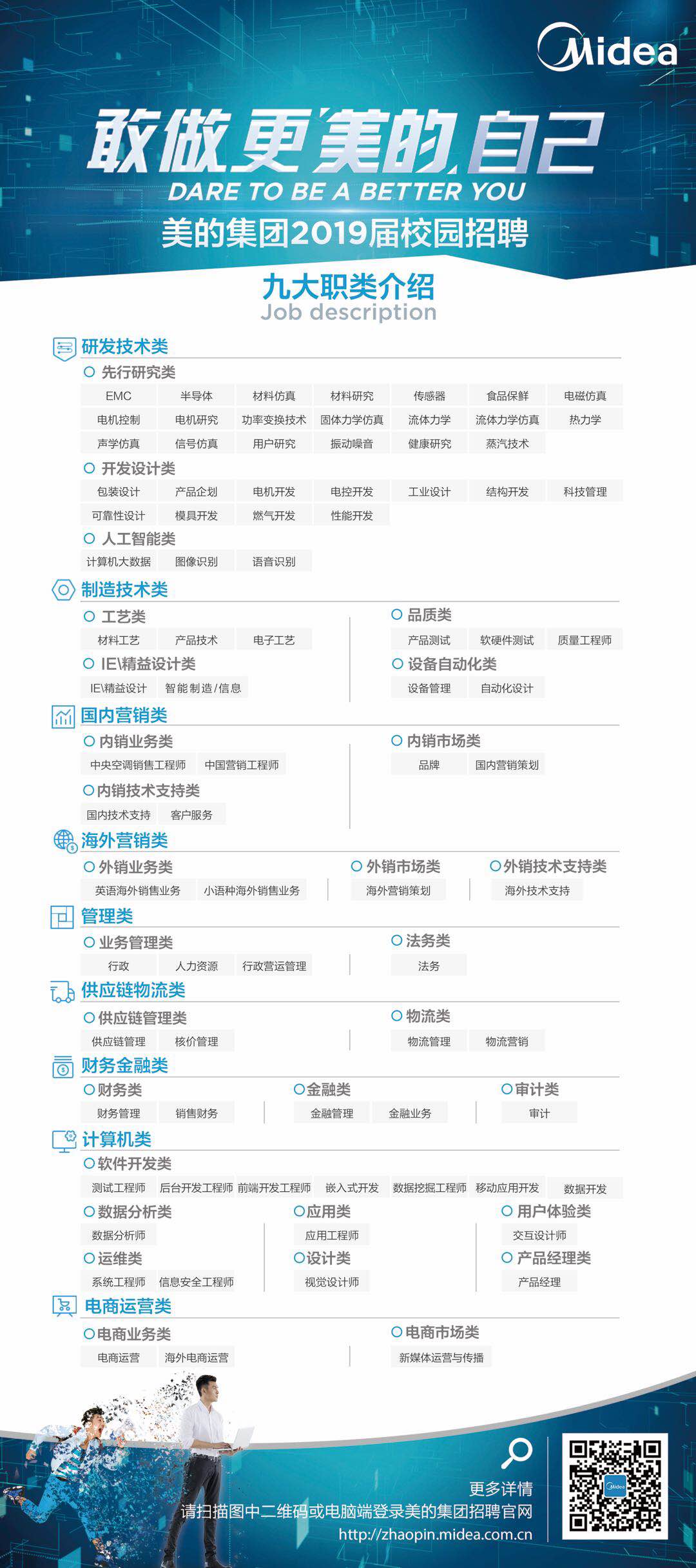 【就业】本科及以上-【敢做更美的自己】美的集团2019届校园招聘简章